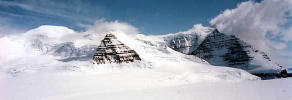 Mount Kershaw on the left with neighboring peaks being overtaken by clouds.