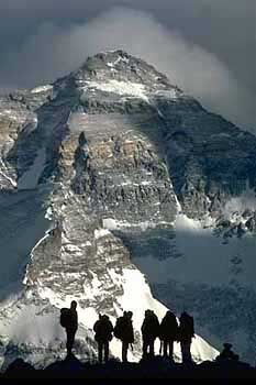 The north side of Everest. Changtse is between Everest and the climbers in this shot taken from down near Rongbuk Base Camp at about 16,900'. The Central Rongbuk glacier