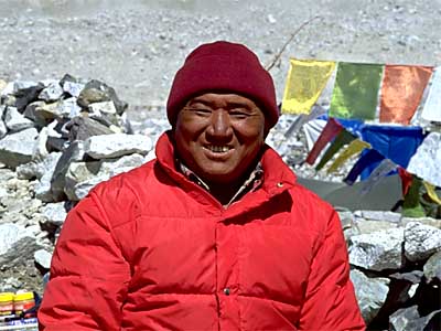 | Pasang Sherpa, Thakshindu, sirdar (lead Sherpa). Pasang has a long history of climbing expeditions. In 1973, he was the second sirdar for the Japanese team and spent 57 consecutive days in the Western Cwm at Camp II (21,500'). He's a man of few words, is modest, and of impeccable integrity. He was the sirdar on Wally Berg's first expedition in '86. |