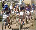 Then Miguel Martinez (FRA, Full Dynamix) made a contest of it for the last four laps, staying with Bas while a chase group tried to make its own ground. Michael Rasmussen (DEN, Haro/Lee Dungarees) had done well for three laps, but eventually faded to 16th. Luca Bramati (ITA, Scott) also looked good early on, but neither could keep up with the scorching pace of the leaders. While Bas and Miguel flew off the front to the tune of 41 seconds by lap 4, two surprises emerged toward the front. One was Marcel Heller (SUI, Arrow Swiss Bike) who, in his first World Cup since becoming a full-time pro, finished 3rd and had everyone asking "who was that?" Roland Green (CAN, GT), who often looks good in the early season, held on for 4th and a great World Cup result. Marco Bui (ITA, Full Dynamix), Thomas Frischknecht (SUI, Ritchey-Yahoo!) and Christophe Dupouey (FRA, Giant) rode together in a secondary chase group. By the end of the afternoon the race had claimed plenty of riders, as only 69 finished on the lead lap and nearly 7 minutes separated the top 20 finishers. The course was dusty, dry and bumpy, prompting many men and women to roll out the full suspension bikes, making this event possibly the most suspended world cup ever. While some new names appeared in the top-10 this week (ever heard of Roberto Lezaun or Lado Fumic?), others were notably absent. Two Giant riders, a fatigued Jerome Chiotti, and Rune Hoydahl, had a DNF and a 17th, respectively, while others like Dupouey, Sauser and Rasmussen are, hopefully, just pacing themselves. World Cup champion Cadel Evans (AUS, Volvo-Cannondale) is out for two months with a broken collarbone, suffered during practice for Friday night's street crit. As usual, Tinker Juarez (USA, Volvo-Cannondale) was the top American, at 35th place, with Steve Larsen (USA, Mongoose L.L. Bean) 38th and Travis Brown (USA, Trek Volkswagen) 48th. Next stop for the circus, the spring break capital of Mazatlan, Mexico, hosts the tour as it goes south of the border for the first time. Check back next weekend.